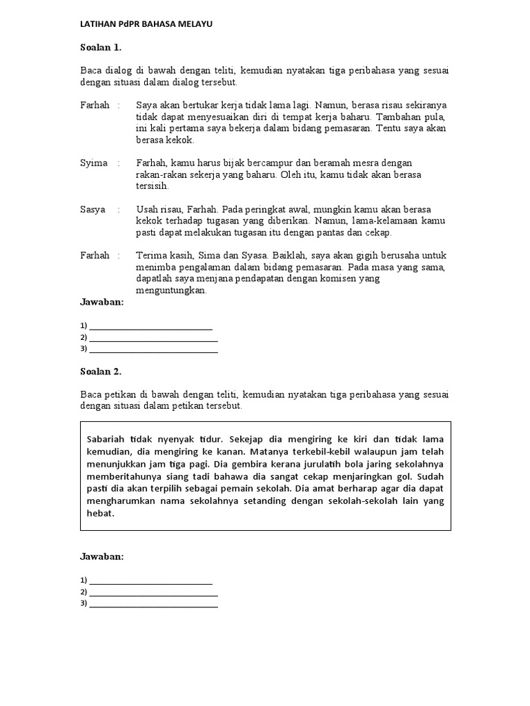 Latihan Pdpr Bahasa Melayu Peribahasa Pdf